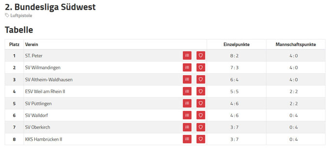 Zwei unglückliche Niederlagen für die 1. Mannschaft Luftpistole des SV Willmandingen. Die Tabelle Stand 5.11.2017: